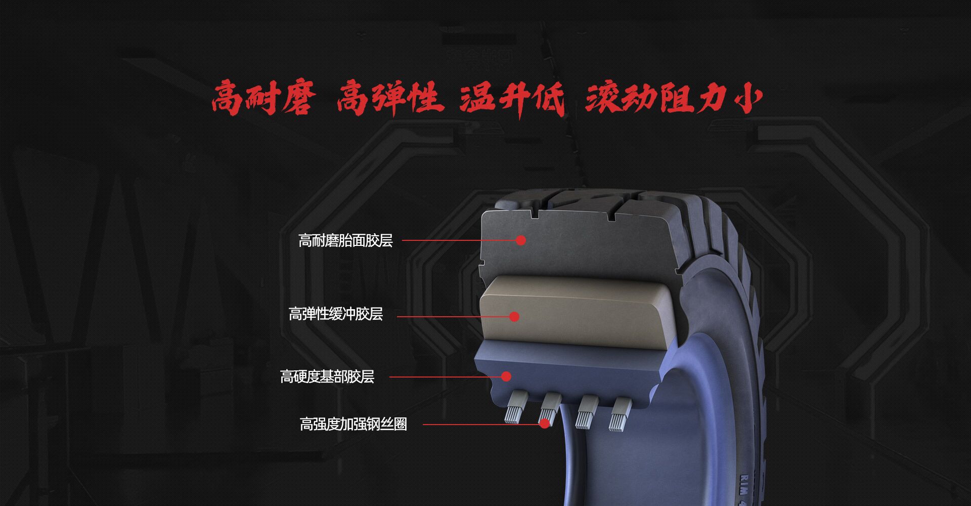 實(shí)心輪胎主要適用于地面復(fù)雜惡劣工況下的叉車、拖車、裝載機(jī)、軍用車輛等機(jī)械車輛的配備,廣泛應(yīng)用 于鋼鐵廠、礦山、建筑工程、港口、物流、廢金屬加工廠等領(lǐng)域。 實(shí)心輪胎胎體為全橡膠構(gòu)成,最大限度地保證了輪胎的耐刺穿性,從根本上消除了工業(yè)車輛在承載運(yùn)行過 程中及在惡劣的作業(yè)環(huán)境中的輪胎刺穿隱患。實(shí)心輪胎的負(fù)荷—形變量小、運(yùn)行穩(wěn)定性好,因其耐刺耐撕、耐 高溫、耐腐蝕、耐磨損,無需充氣,避免了頻繁補(bǔ)胎換胎的繁重勞動(dòng),可提高車輛的使用率和工作效率,在低 速、高效運(yùn)行車輛